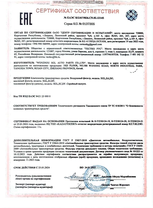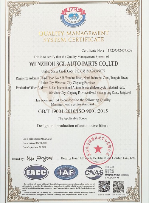 Расположенная в городе Жуйань провинции Чжэцзян — производственном центре автозапчастей в Китае — компания Wenzhou SGL Auto Parts Co., Ltd. является профессиональным производителем, объединяющим НИОКР, проектирование, производство и продажу высокопроизводительных фильтров для коммерческих транспортных средств, таких как грузовики, тяжелые грузовики, легкие грузовики и автобусы.